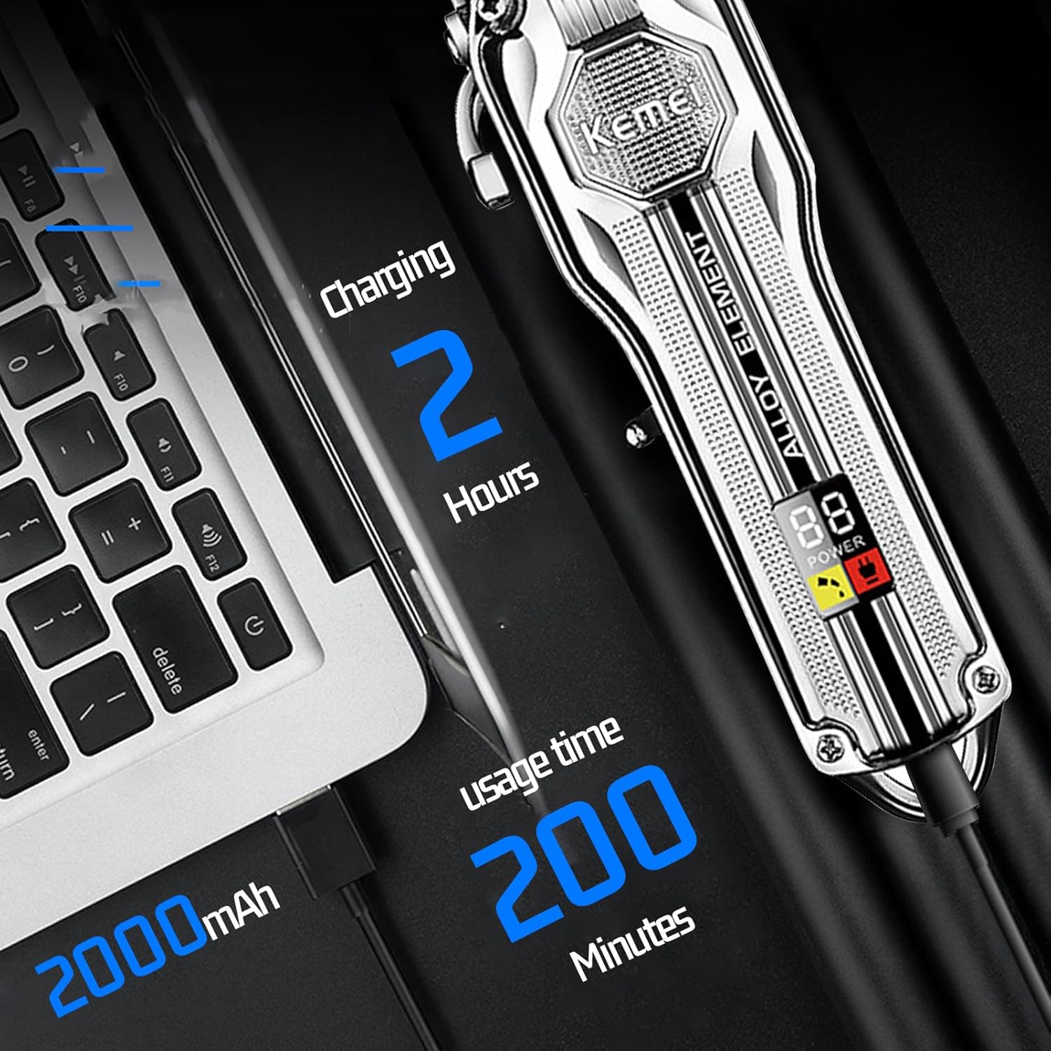 ماشین اصلاح موی سر و ریش تراش Kemei دارای یک باتری لیتیومی قدرتمند با ظرفیت 2000 میلی آمپر ساعت است که از طریق پورت تایپ سی و کابل شارژ یواسبی به تایپسی موجود در بستهبندی شارژ میشود و پس از شارژ میتوانید تا 90 دقیقه از آن برای نظافت استفاده کنید. شما میتوانید با استفاده از شارژر دیواری، لپ تاپ، شارژر فندکی، پاوربانک و ... این محصول را شارژ کنید.