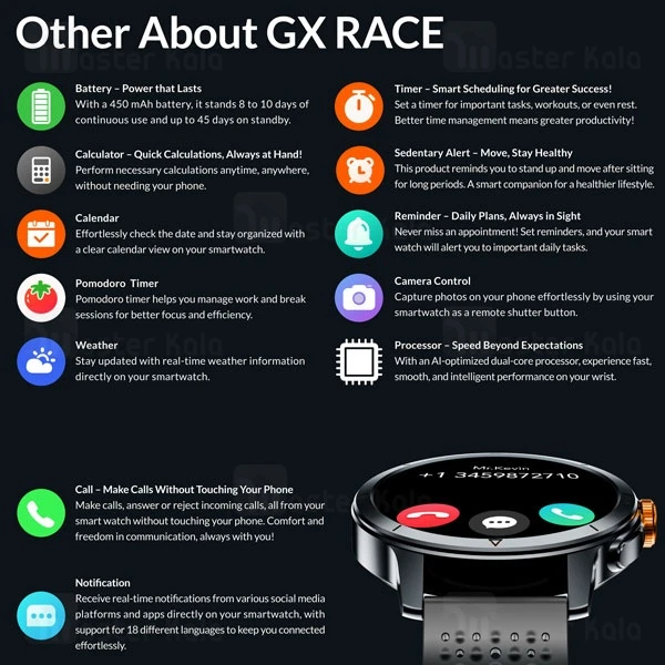 ساعت هوشمند گلوریمی Glorimi GX Race می تواند اس ام اس ها، تماس ها، زنگ آلارم و سایر اطلاعات برنامه های اجتماعی را به موقع به شما یادآوری کند.