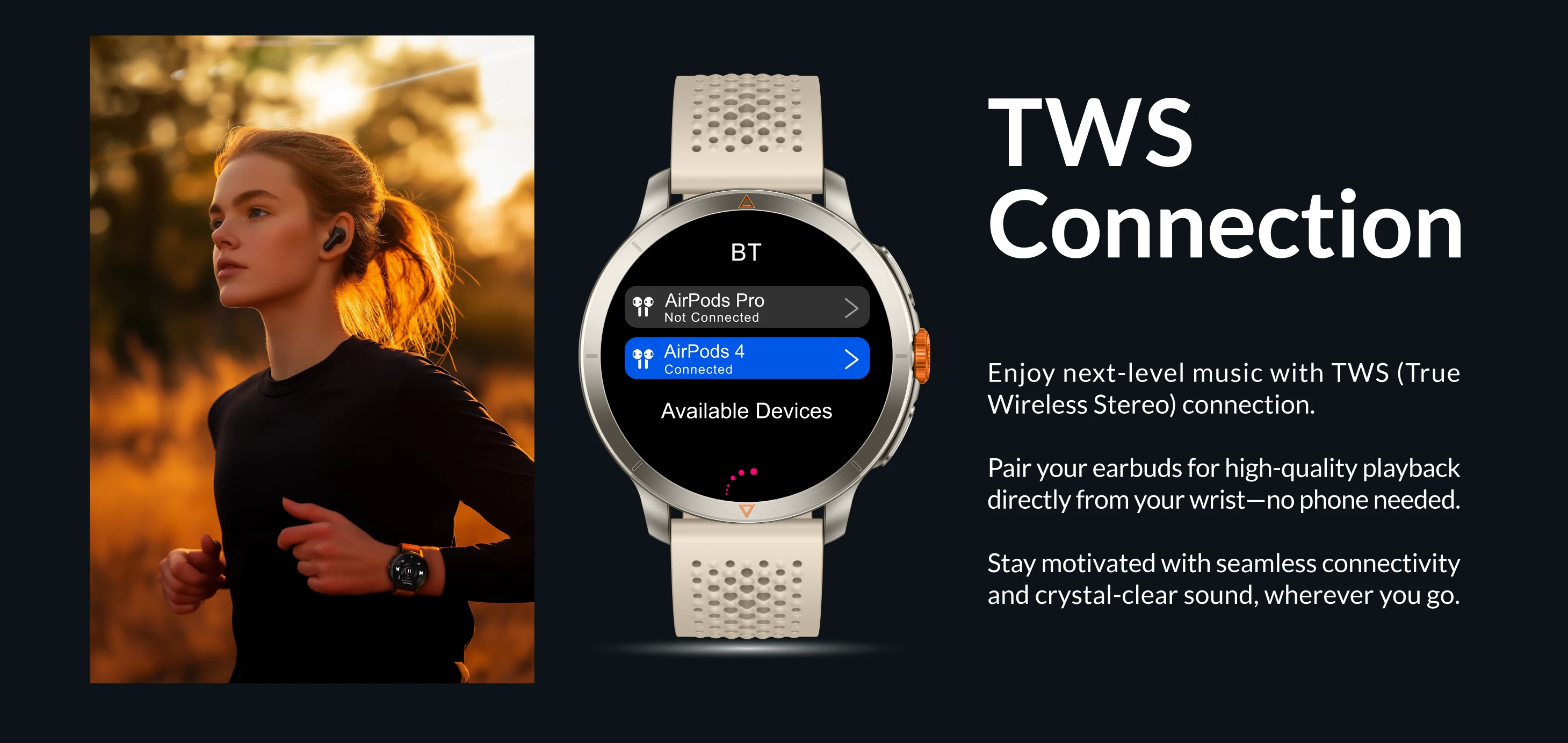از قابلیت های مهم این ساعت می توان به امکان وصل شدن هندزفری به ساعت، کار با هوش مصنوعی، تمرین و تست تنفس، پخشکننده موسیقی، دستیار صوتی Al، آلارم، قفل رمز عبور، ماشینحساب، پیشبینی آب و هوا، کرونومتر، تایمر، ساعت جهانی، چراغ قوه، حالت ذخیره انرژی، پیدا کردن تلفن، پشتیبانی از ایموجی، دارای بازی و ... اشاره کرد.