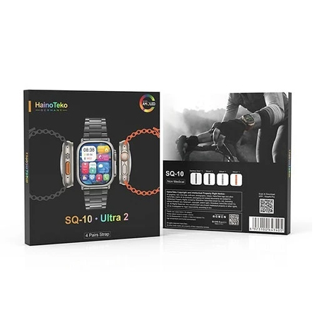 ساعت هوشمند هاینوتکو SQ10 ultra 2 یک ساعت طرح اپل واچ اولترا است. در پک ساعت هوشمند هاینو تکو مدل SQ10 Ultra 2، سه بند سیلیکونی با 3 رنگ مختلف و 1 بند فلزی با رنگ مشکی یا نقره ای گنجانده شده است. شما میتوانید بندها را متناسب با لباس خود ست کنید. ضمنا نوع قفل بند سگکی ساده است.